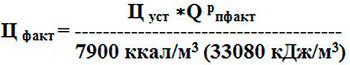 Q р пфакт — фактическая объемная теплота сгорания в ккал/м³ (кДж/м³), указанная в паспортах качества Поставщика;